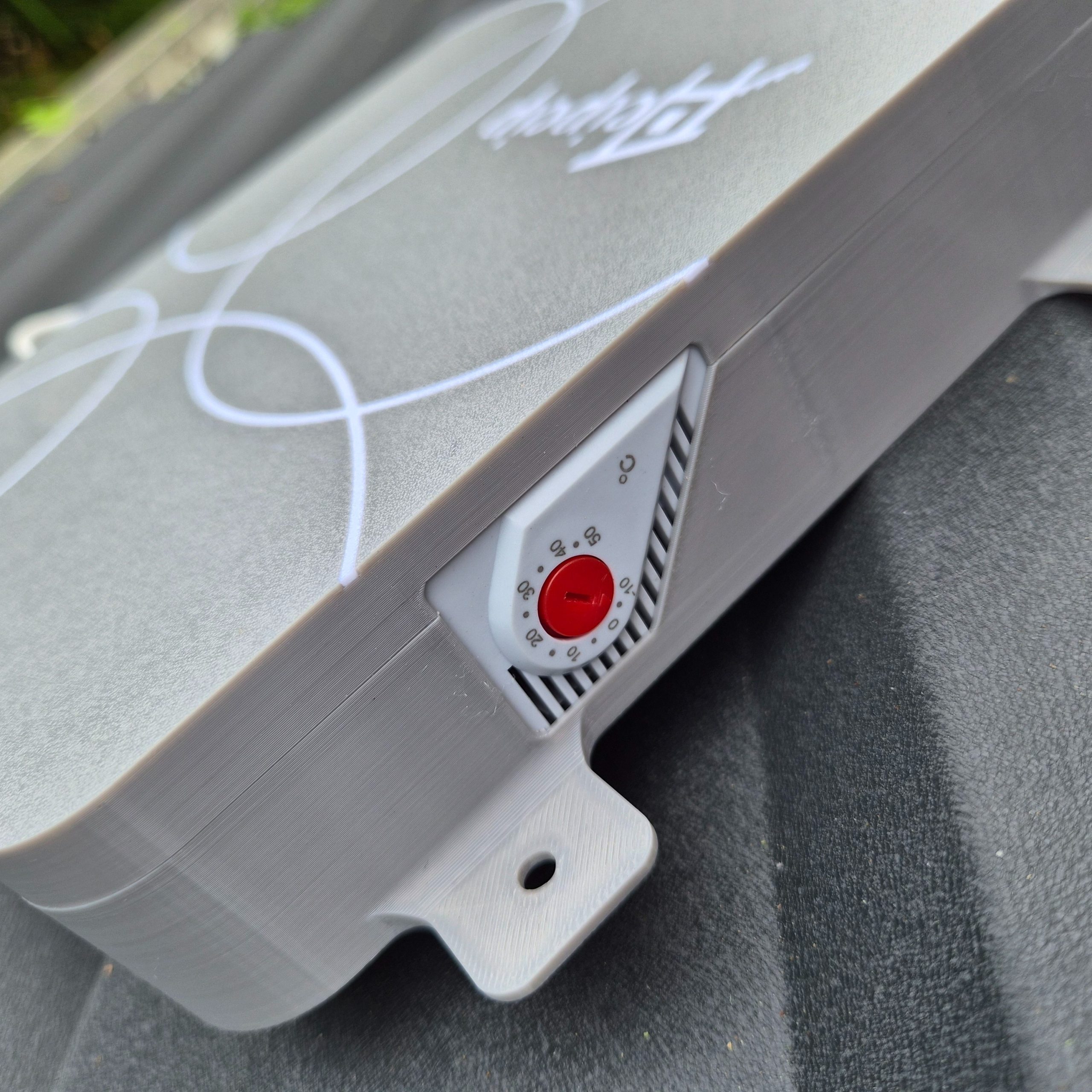Termostats: regulējams -10 … +50 °C, tolerance ±2–3 °C.